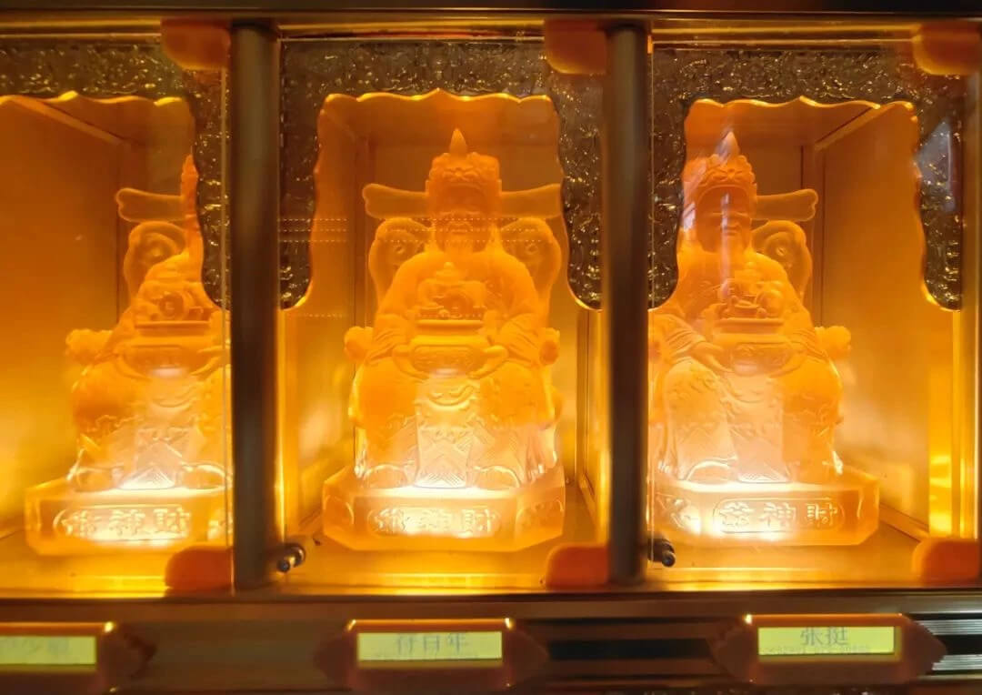 滄海桑田,流水變甘泉,時代在發(fā)展,茅洋寺也與時俱進(jìn),響應(yīng)號召,拒絕明火,將科學(xué)技術(shù)融入寺院,用智慧化手段管理寺廟,例如金蛹設(shè)計(jì)的財神殿財神墻。