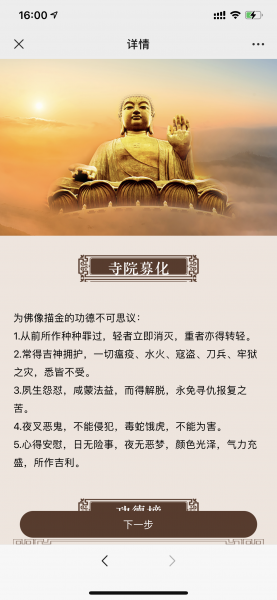 小程序/公眾號H5 內(nèi)的大部分模塊可以自定義拖拽布局,顏色皮膚可自定義,用戶可以生成符合自家宗教場所的微信公眾號系統(tǒng)或者小程序系統(tǒng),智佛提供的并非平臺類公司聚合式小程序或者APP,生成的小程序或者公眾號都是場所自家獨有的。
