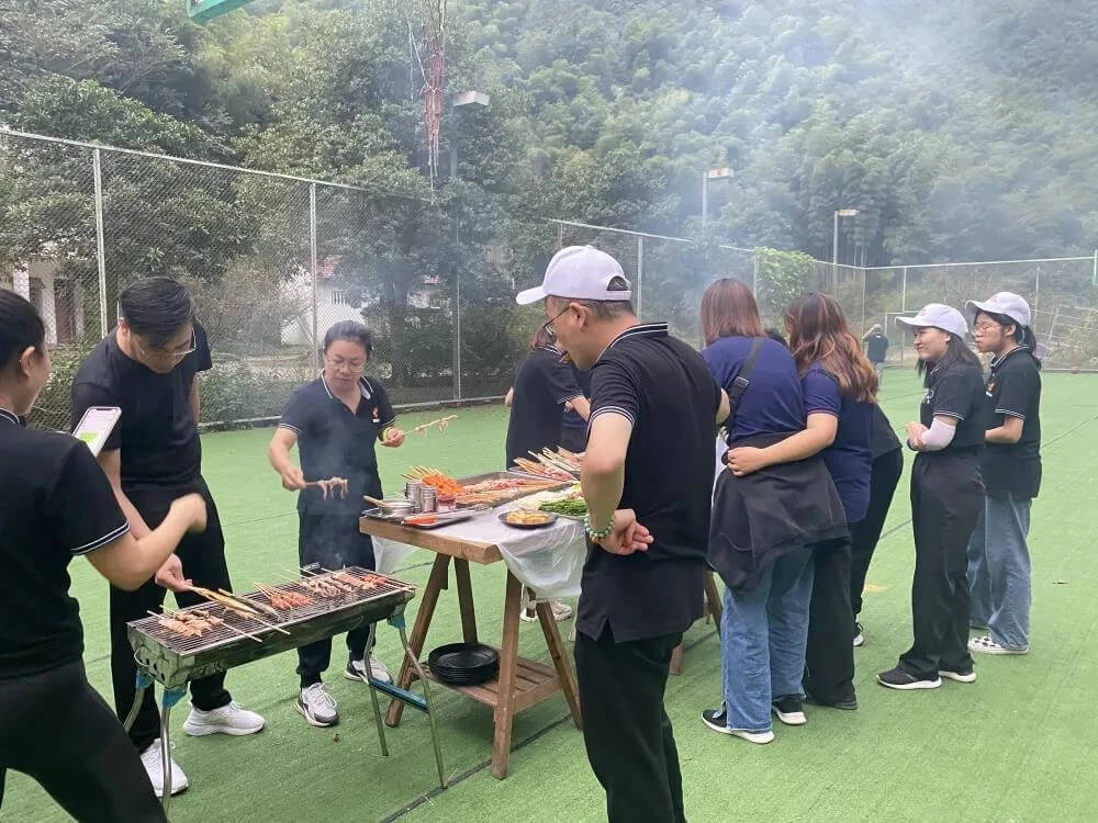轉(zhuǎn)眼天色漸暗,下面也到了大家最期待的喝酒擼串環(huán)節(jié)。大家齊心協(xié)力,很快一場可口的燒烤盛宴做好,美食相伴,開懷暢談,好不自在。