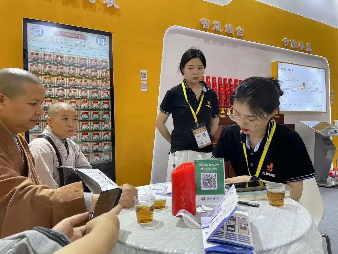 展會(huì)期間,金蛹的展位上一直熱鬧非凡,來自全國各地的法師們紛紛與金蛹的智能產(chǎn)品結(jié)緣。來自黑龍江、遼寧、福建、江蘇等地的法師結(jié)緣了智能功德箱、供燈機(jī)等硬件設(shè)施。