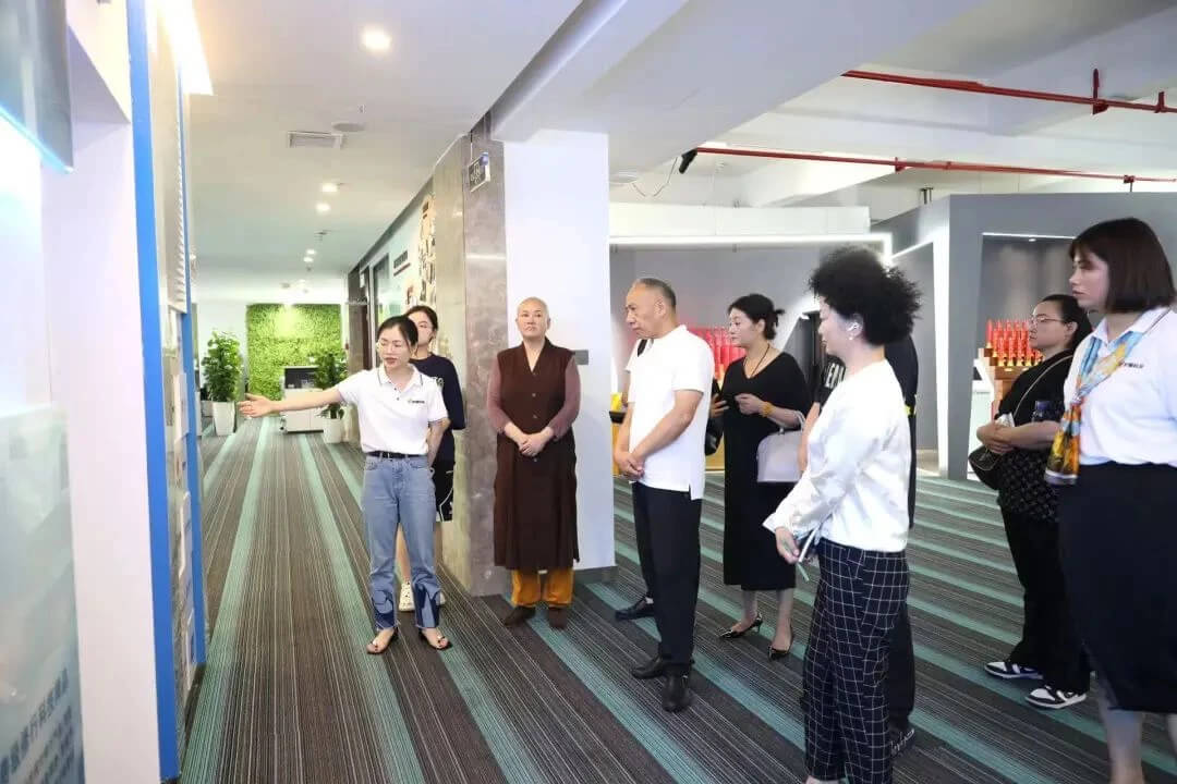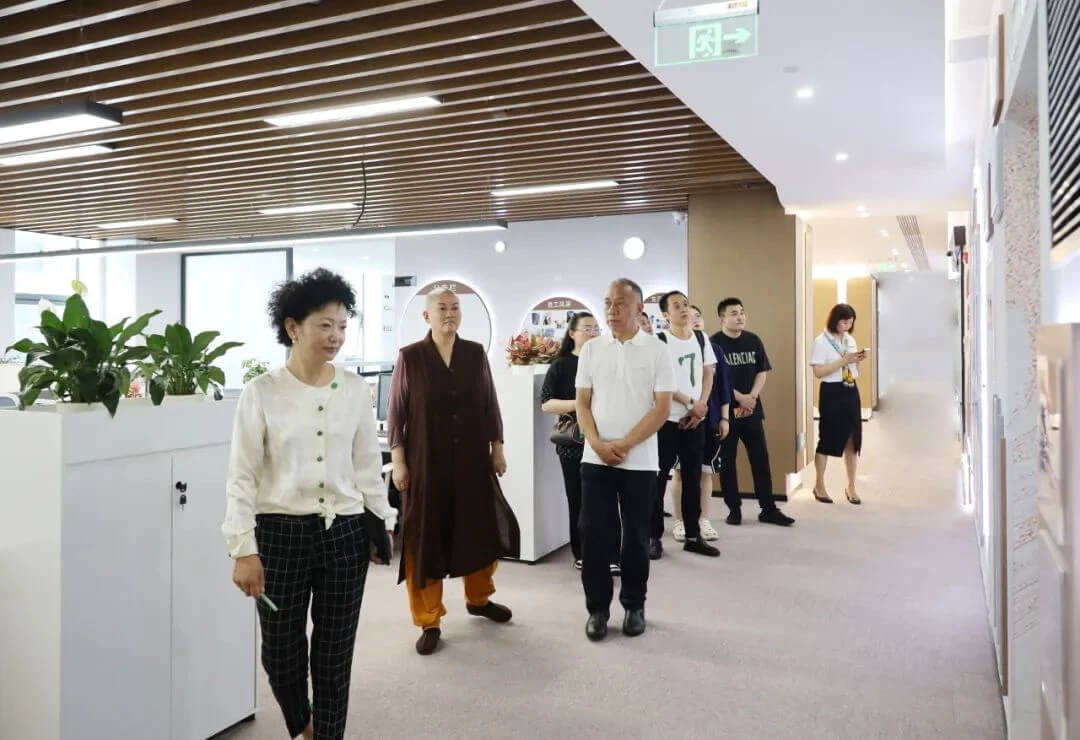 2023年7月12日,徐州市民宗局副局長黃修建、全國第一比丘尼道場竹林寺住持明道大和尚等一行蒞臨福慧控股及旗下子公司金蛹科技、心旅文化考察指導(dǎo)。